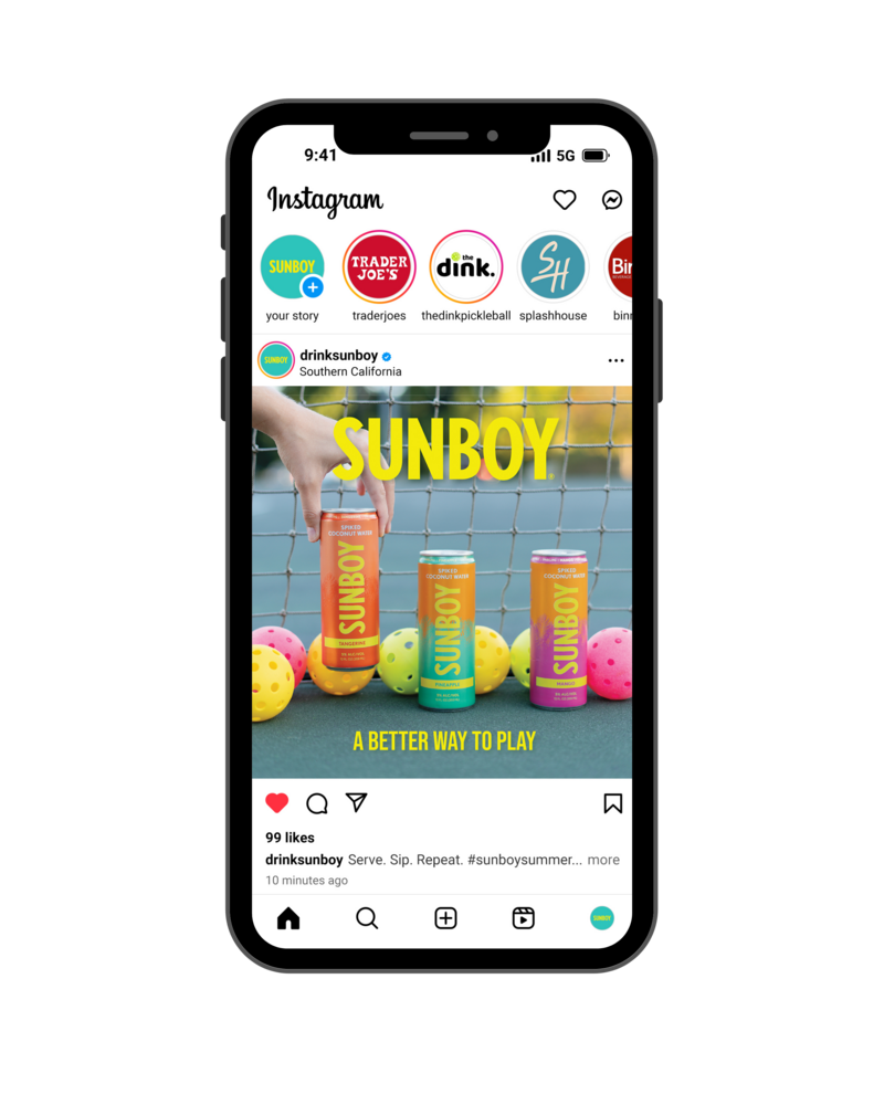 SUNBOY is all about easygoing fun, so we created a campaign that brings that spirit to the court. We produced a playful social video, lifestyle-focused photography, and a three-part Instagram series designed to highlight SUNBOY as the drink for casual hangs and spontaneous plans. The campaign blends style, movement, and a touch of nostalgia to show that post-match refreshment can look (and taste) like sunshine.